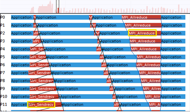 Analyze an MPI application behavior, find bottlenecks and identify serialization to find the ways to improve the application performance.