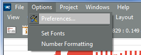 The Options Menu has the following entries: Preferences, Set Fonts and Number Formatting.