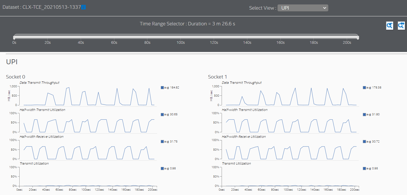 Switch to the UPI view to see the cross-socket traffic transmitted by each socket.