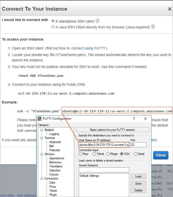 PuTTY* does not natively support the private key format (.pem) generated by Amazon EC2. You should convert your private key (.pem) to the required PuTTY format (.ppk) using PuTTYgen before attempting to connect to your instance using PuTTY:
