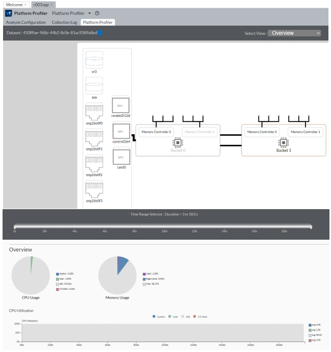 When the data collection completes, VTune Profiler finalizes the data and displays results in the Platform Profiler tab. Information in this tab is contained in three sections: