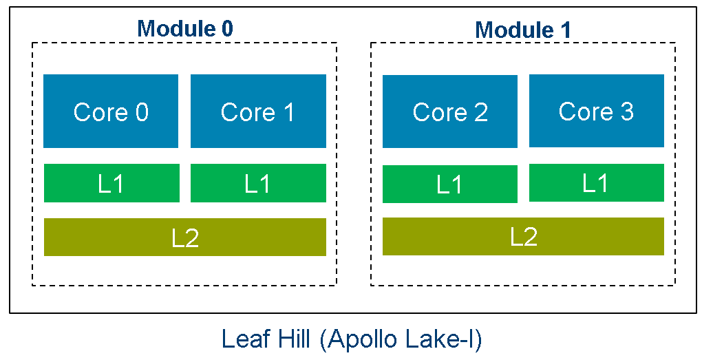 Both cores belong to Module 1 and share the L2 LLC.
