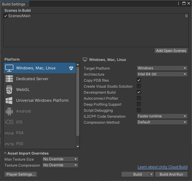 Build the game. Make sure to select the Copy PDB Files and Development Build options.