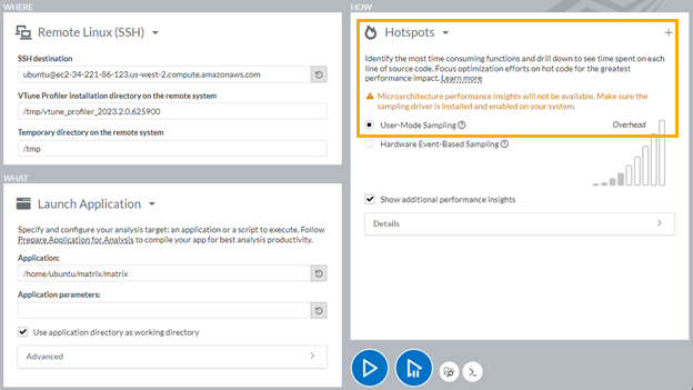 8. In the HOW pane, select Hotspots analysis with User-Mode Sampling collection.