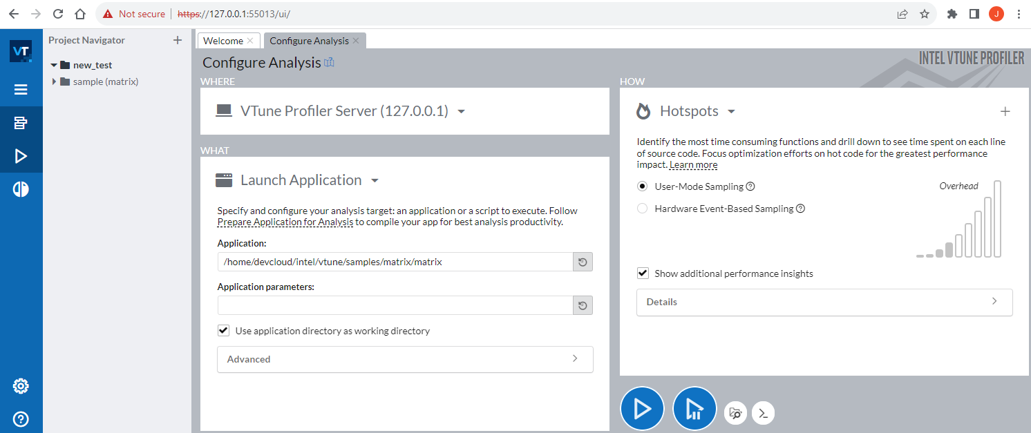 Start Intel® VTune™ Profiler Web Server