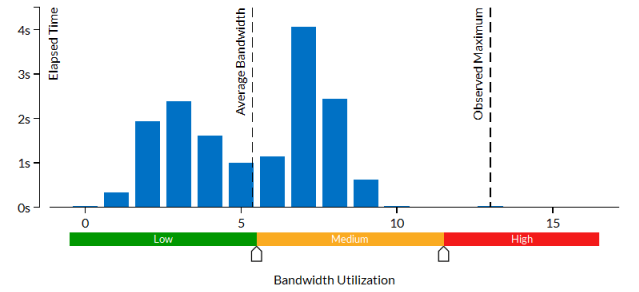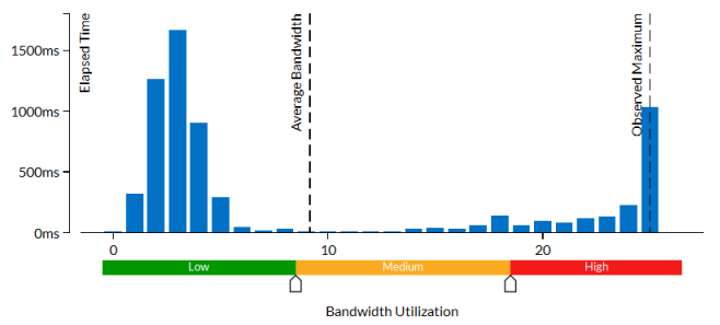 The Bandwidth Utilization Histogram also shows that the application underutilized the DRAM bandwidth with the Observed Maximum about 13 GB/sec, which is much less than expected: