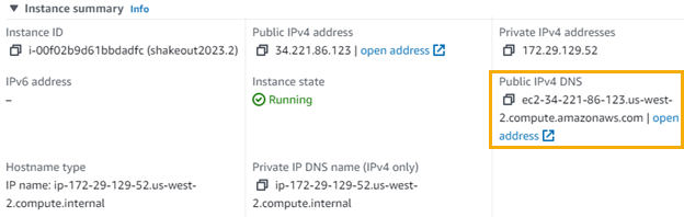 Locate the public IPv4 DNS address for your instance: