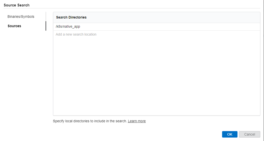 To analyze the application running within the pod, run the Hotspots analysis in User-mode or Hardware Event-based Sampling mode. However, you must first configure the analysis to attach to the process. Specify the binaries and symbols of the application for Function level and Source level analysis of collected data: