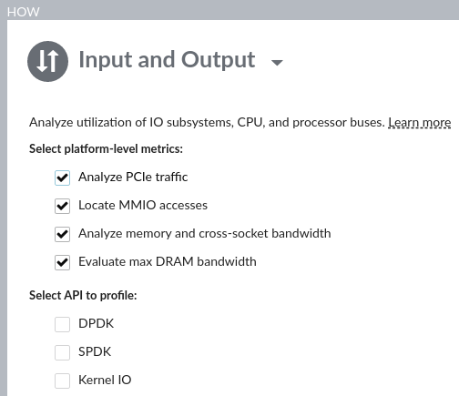 Check the Analyze PCIe traffic checkbox to collect Intel DDIO utilization efficiency metrics.