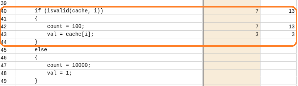 There were additional calculations that happened in slower iterations in the absence of a valid data element in the cache.