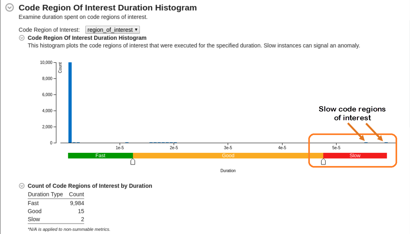 1. Once the analysis completes, switch to the Summary window. Take a look at the Code Region of Interest Duration Histogram.
