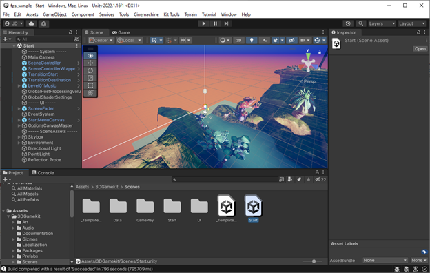 Application: Unity 2022.1.16. The sample game in this version of Unity uses the free asset 3D Game Kit.