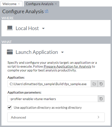 In the Application parameters field, enter -profiler-enable-vtune-markers.