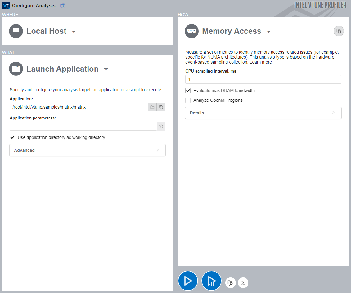 Click the Memory Access icon in the previously collected Performance Snapshot result or click the Configure Analysis button in the main toolbar.