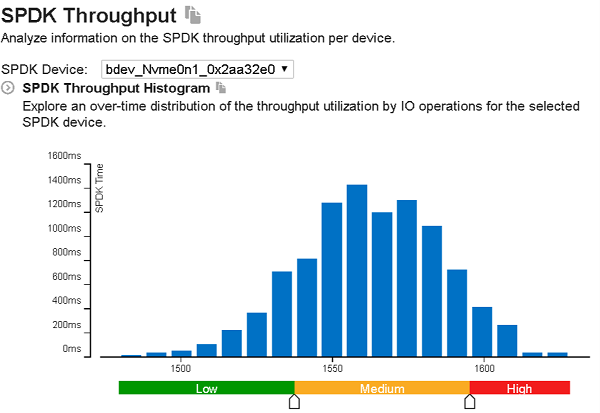 Use the SPDK Throughput Utilization histogram of the Summary tab to understand utilization of specific storage devices managed by SPDK: