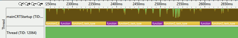 VTune Profiler processes this data as frames (there are no TID and PID values specified) and displays the result as follows: