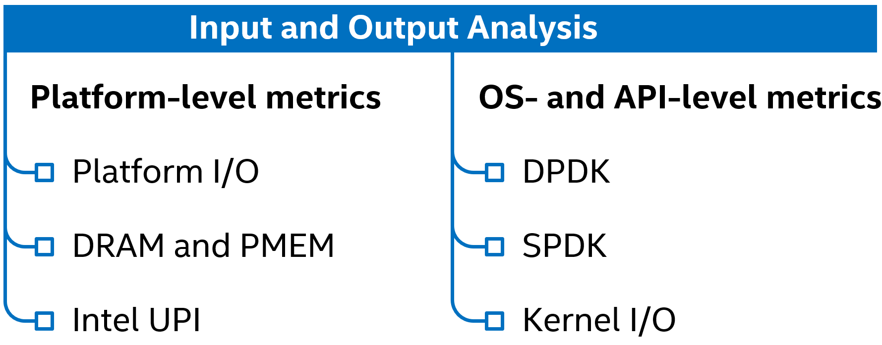 - OS- and API-specific metrics — performance metrics for software data planes—DPDK and SPDK—and the Linux* kernel I/O stack.
