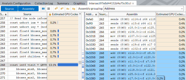 When the data is collected, explore the EU Array Stalled/Idle section of the Summary window to identify the most typical reasons why the execution units could be waiting.