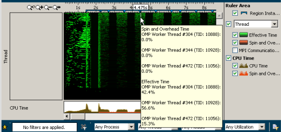 Select a thread/module of your interest. VTune Profiler automatically highlights the program units (for example, functions) corresponding to the selected item in the Bottom-up and Top-down Tree panes. |