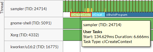 Explore your application performance for user tasks such as Intel ITT API tasks, Ftrace*/Systrace* event tasks, SYCL and OpenCL™ API tasks, and so on.