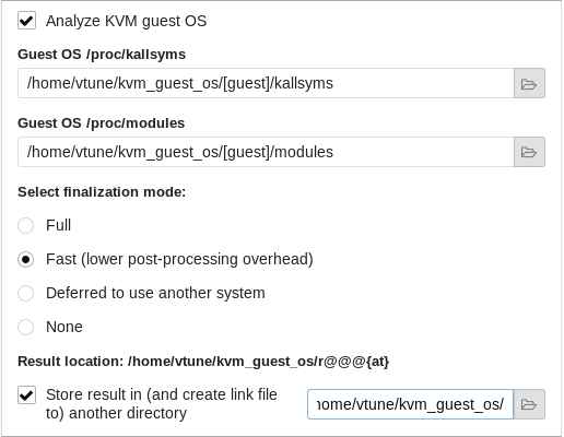 4. In the Advanced section of the WHAT pane, select the Analyze KVM guest OS option and enter paths to the local copies of the guest /proc/kallsyms and /proc/modules files; for example: