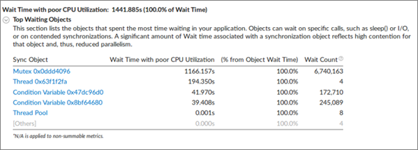 If this mode brings significant overhead in the application runtime, try the Hardware Event-Based Sampling and Context Switches mode, which offers a less intrusive method of wait time collection.