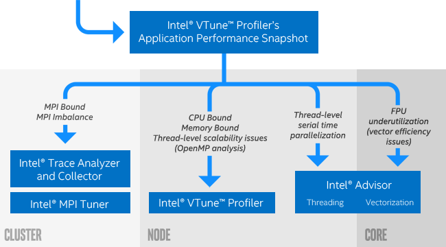 Use these Intel performance analysis tools for the performance optimization workflow: