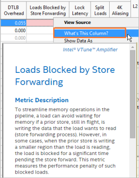 • What's This Column: In the grid, right-click a performance metric column and select the What's This Column entry from the context menu to open a help topic for this particular metric. You can also view a lightweight metric description in the pop-up window when hovering over the column name.
