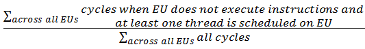 Stalled: The normalized sum of all cycles on all cores spent stalled. At least one thread is loaded, but the core is stalled for some reason. Formula: