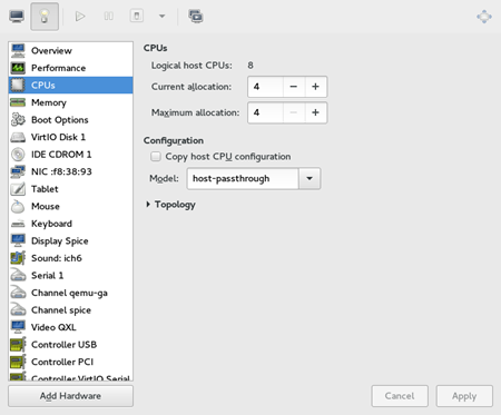 Enter host-passthrough into the Model field to pass through the host CPU features without modifying the guest system.