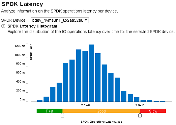 Use the SPDK Throughput Utilization histogram of the Summary tab to understand utilization of specific storage devices managed by SPDK: