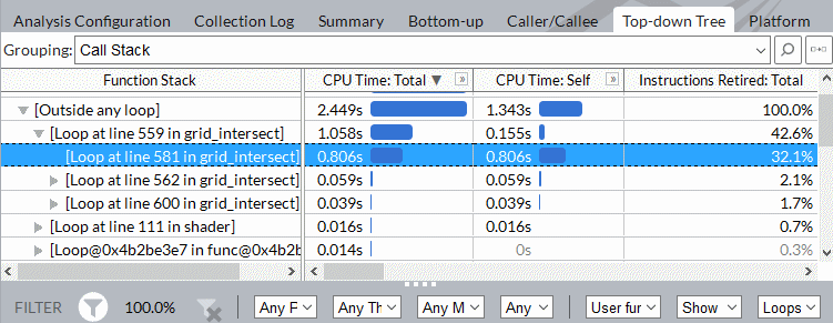 Use the Intel® VTune™ Profiler to view a hierarchy of the loops in your application call tree and identify code sections for optimization.
