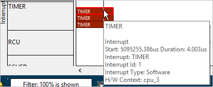 Interrupt. Identify the intervals where system interrupts occurred. Hover over an interrupt object to view full details in the tooltip: