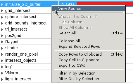 To open the source/assembly code of a specific item, either double-click the selected item in the grid view/Call Stack/Timeline pane, or select the View Source option from the context menu: