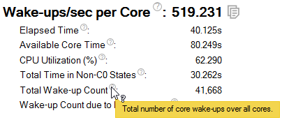 See Window: Core Wake-ups - Platform Power Analysis for more information.
