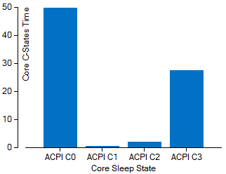 Graphical representation of the amount of time spent in each core sleep state (C-State). Hover over a bar to see the number of seconds the system spent in a specific sleep state.