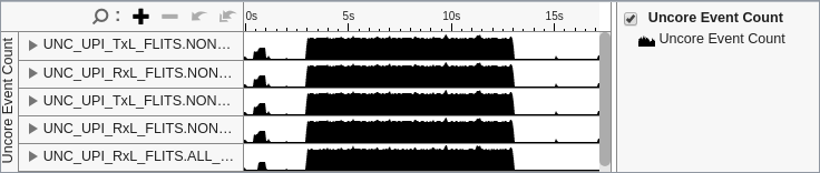 Use the Uncore Event Count window to analyze the event count for uncore events.