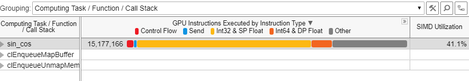If your OpenCL kernel uses inline functions, make sure to enable the Inline Mode on the filter toolbar to have a correct attribution of the GPU Cycles per function. See examples.