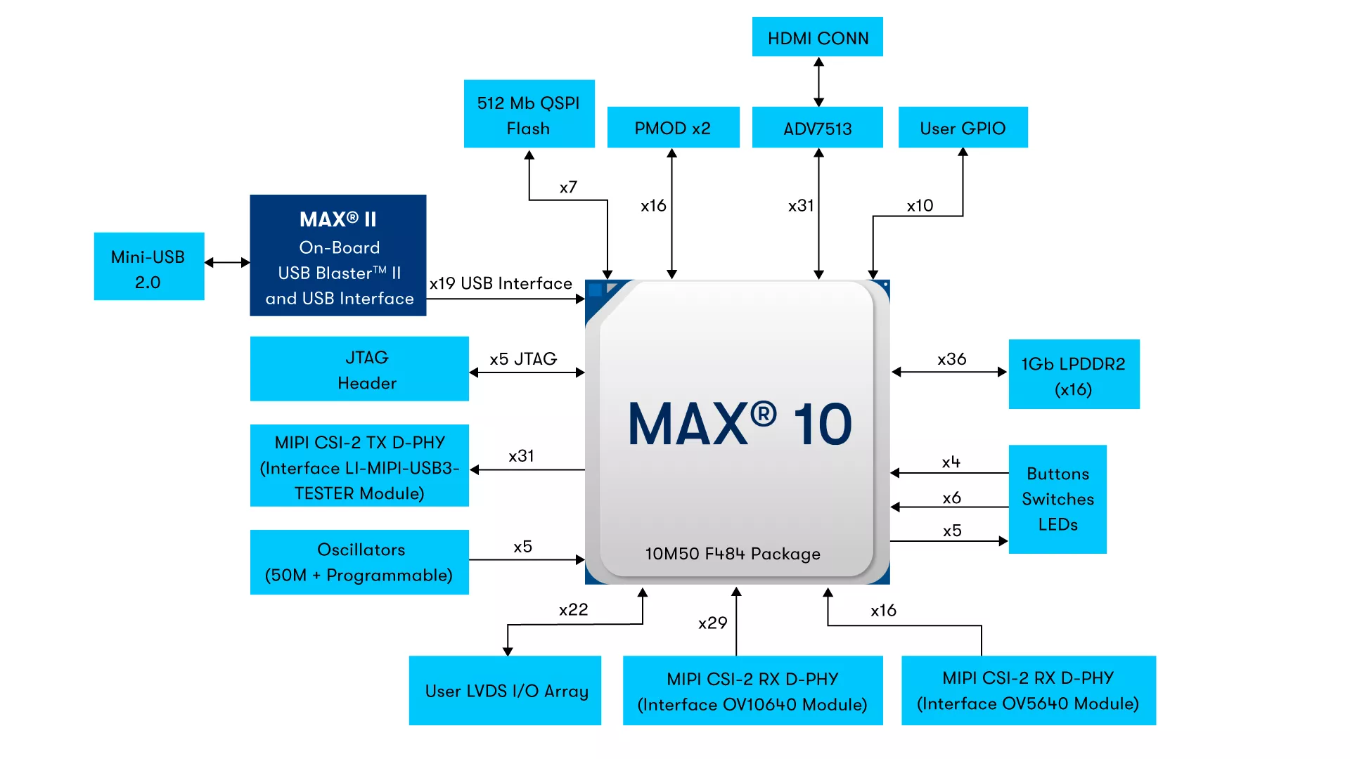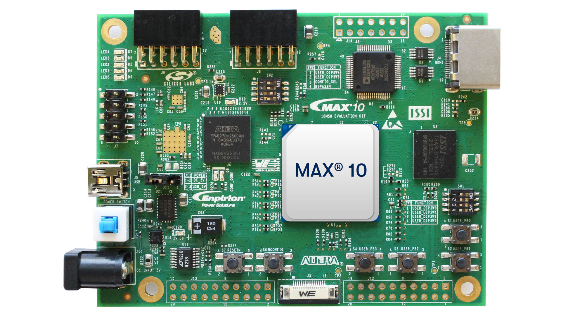 The MAX® 10 FPGA 10M50 Evaluation Kit provides an easy-to-use platform for evaluating the MAX® 10 FPGA technology.