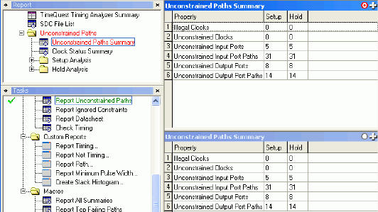 The sub-pane is both the focal pane as well as the target pane for all report output that the TimeQuest analyzer generates. |