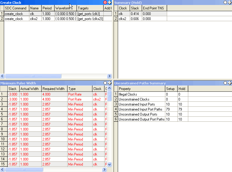 The TimeQuest Timing Analyzer displays various graphical and text-based reports detailing timing analysis results. You can generate reports following a successful TimeQuest analysis. The Report pane displays a list of generated reports that are available for display in the View pane. You can also manipulate the View pane to display multiple reports.