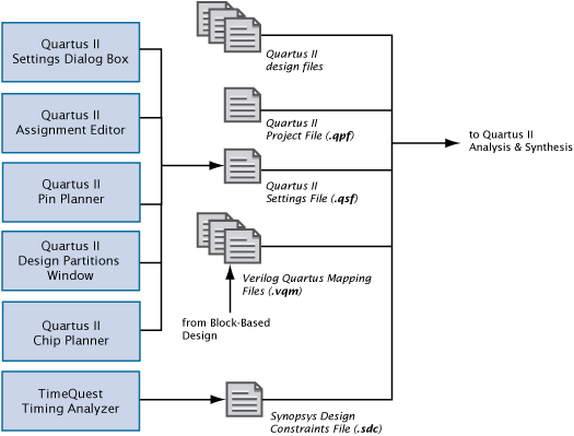 Assignments control a variety of different functions of the Quartus II software and are an important part of an efficient and effective design. When used in conjunction with a good design practices, assignments can help you successfully compile your design. You can create assignments with different editors and dialog boxes in the Quartus II software or with Tcl scripts. Assignments are logic functions you assign to a physical resource on the device, or compilation resources you assign to logic functions.