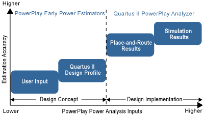 The PowerPlay suite of power analysis and optimization tools allows you to estimate device power consumption and heat dissipation from early design concept through design implementation. Because the quality of the resulting power estimation depends on the quality of input data provided, it is important that you provide the most accurate data possible.