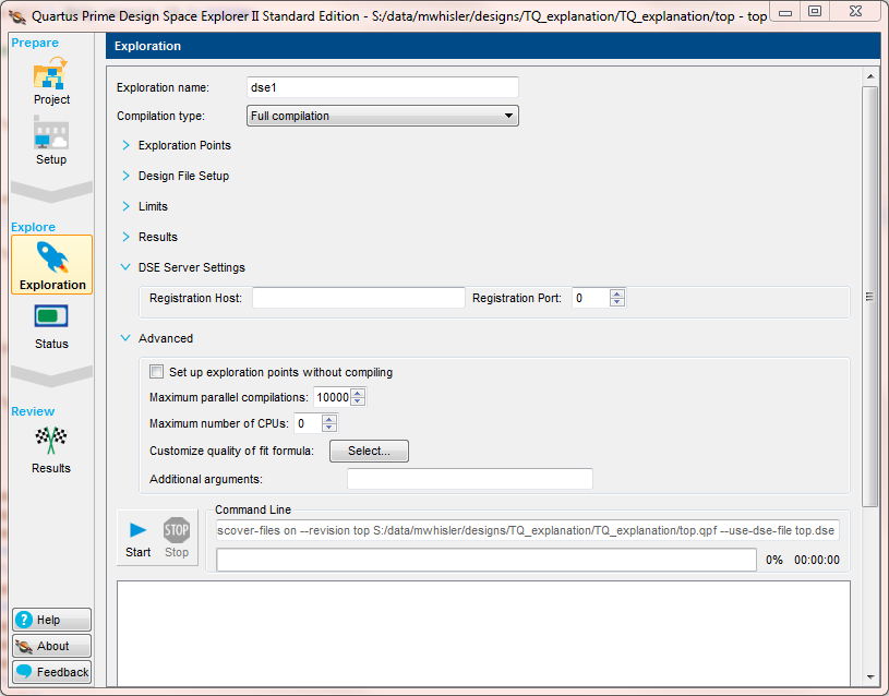Closes the Quartus® Prime Standard Edition software and opens the current project revision in Design Space Explorer II.