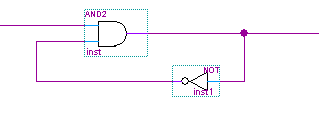 A design should not contain a combinational loop, which is combinational logic that drives itself without being synchronized by a register. The following image shows an example of a combinational loop: