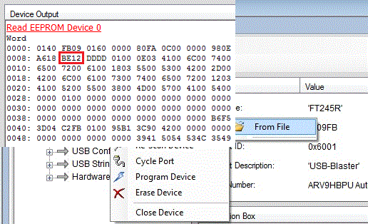 5) Next, using the same Right-Click menu above, select Program Device. Upon the next ‘refresh’ you will see the above field changed to BE12.