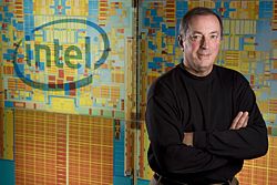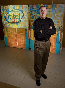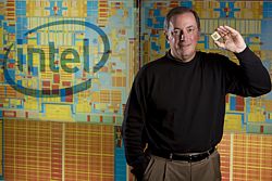 Recognizing the 60th anniversary of the transistor - a key component in a microprocessor - Intel President and Chief Executive Officer Paul Otellini stands in front of a model of today's Intel® 45nm processor if the transistors were identical in size to those in Intel's first product in 1971. Intel's innovations in transistor design ensure PCs and mobile devices are smaller, faster and more energy-efficient than ever.