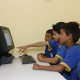 Three students at the Lila Maia School in Parintins, Brazil, play with one of the first Internet-connected PCs installed in the school’s first computer lab. |