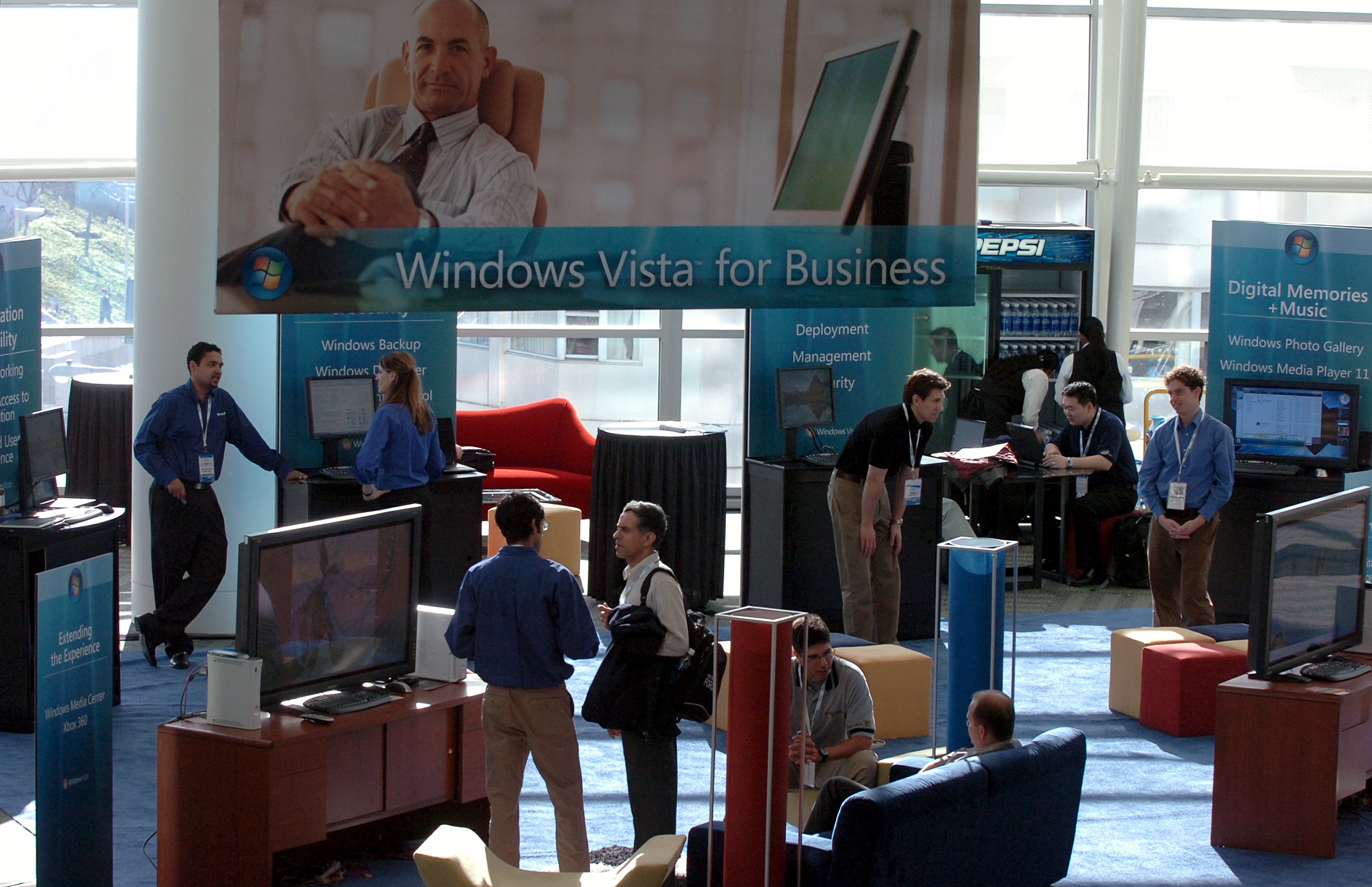 IDF attendees and staff interact in the Digital Lounge at the Intel Developer Forum at Moscone West on Wednesday, March 8, 2006 in San Francisco, Calif. |
