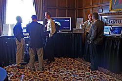 Overview of a news conference for Intel's new Quad-Core Xeon 7300 series processors, September 5, 2007, in San Francisco. Designed for multi-processor enterprise servers, the new 7300 processors can deliver up to twice the performance and more than three times the performance per watt over the company's previous generation dual-core products. (Photo for Intel by Court Mast, Mast Photography, Inc., San Francisco)